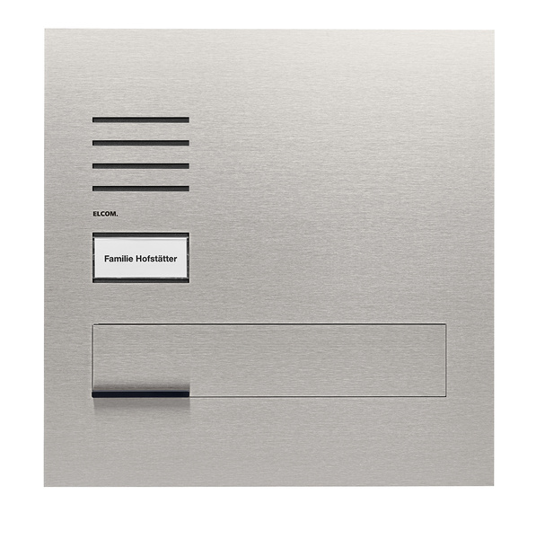 Die designprämierten Außenstationen ELCOM.ONE bestechen durch dezent-edles Design. Dazu tragen zum einen Frontplatten aus gebürstetem Edelstahl bei, die nahezu kratzresistent und rostfrei sind. Zum anderen kommen sie ohne sichtbare Verschraubungen aus, was sie so gut wie vandalismussicher macht. Der Clou: Entscheiden Sie sich im ersten Schritt für eine Audioanlage, ist eine spätere Umrüstung auf Videoversion durch den einfachen Tausch der Frontplatte möglich.